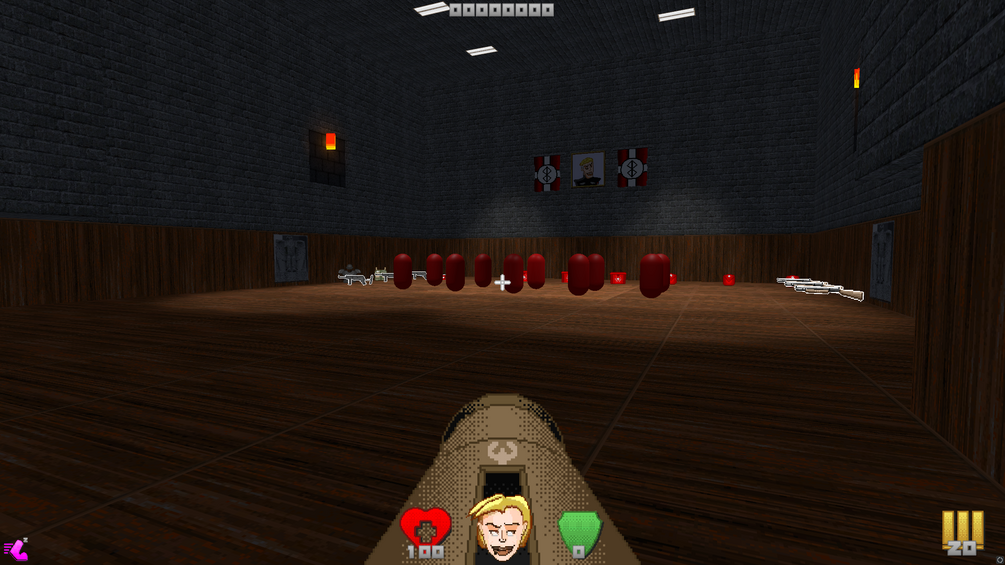 Luckily, your wits have led you to a plan for escape: you hide in the roof of your prison cell at Castle Johannstein when a guard checks inside. Once your prey has entered your cell, you quickly pounce on the guard and silently kill him with a kitchen knife you smuggled from your prison rations. You grab his pistol and set for escaping the castle, hoping you can continue with your mission in assassinating the Führer of Johannland.